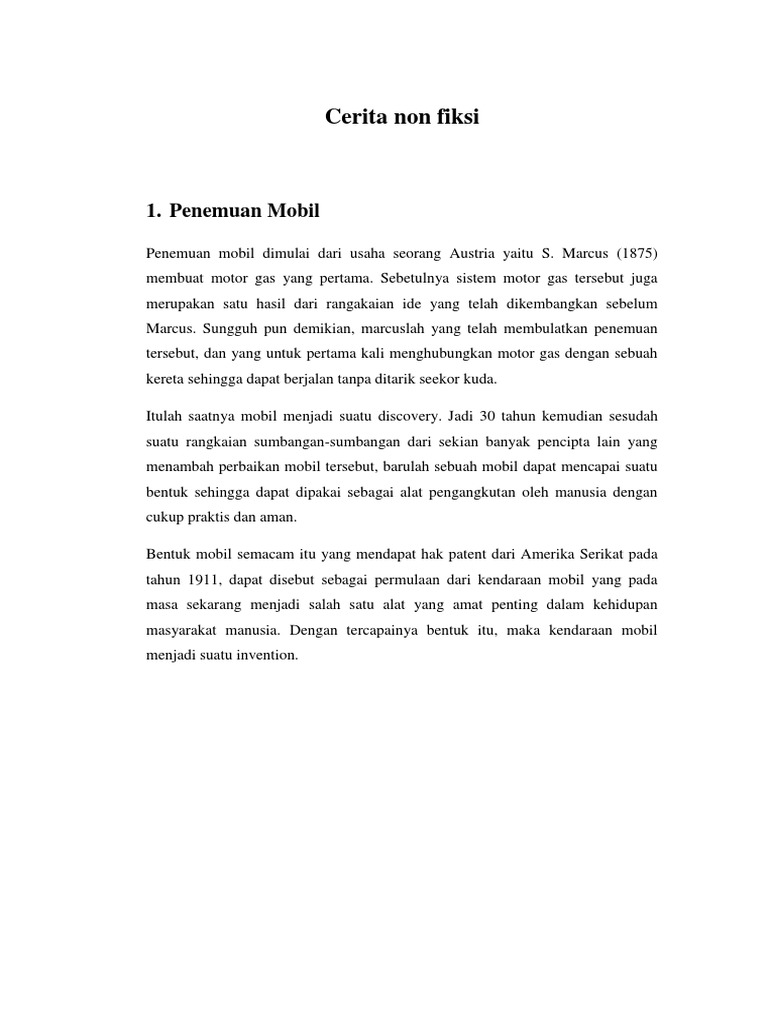 Sebuah contoh fiksi etnografis yang digarap dengan baik elemen jurnalisme layak menjadi bacaan wajib setiap institusi dan siapapun yang terlibat dalam jurnalisme. baca juga: Nah, bagi kamu yang masih bingung bagaimana cara menulis resensi, pada kesempatan kali ini kami akan membagikan ulasan tentang contoh resensi buku non fiksi yang dapat kamu jadikan sebagai sebuah referensi. Tentukan jenis rima pada puisi tersebut 2. Suara dari dilan pengarang : Beberapa contoh karangan yang ada pada golongan non fiksi seperti eksposisi, fungsional, agrumentasi, opini dan esai mengenai sastra, biografi dan jurnalisme serta lainnya.
