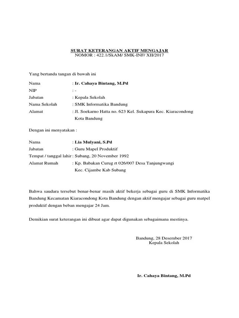More images for contoh surat keterangan masih aktif mengajar » Lampisang, 7 april 2012 kepala sekolah murniati, s. Cisema rt 01 rw 06 desa guranteng kec. Demikian surat keterangan aktif dibuat dengan sebenarnya, untuk dapat dipergunakan seperlunya. Aug 30, 2021 · download 14 30 kb info lengkap.