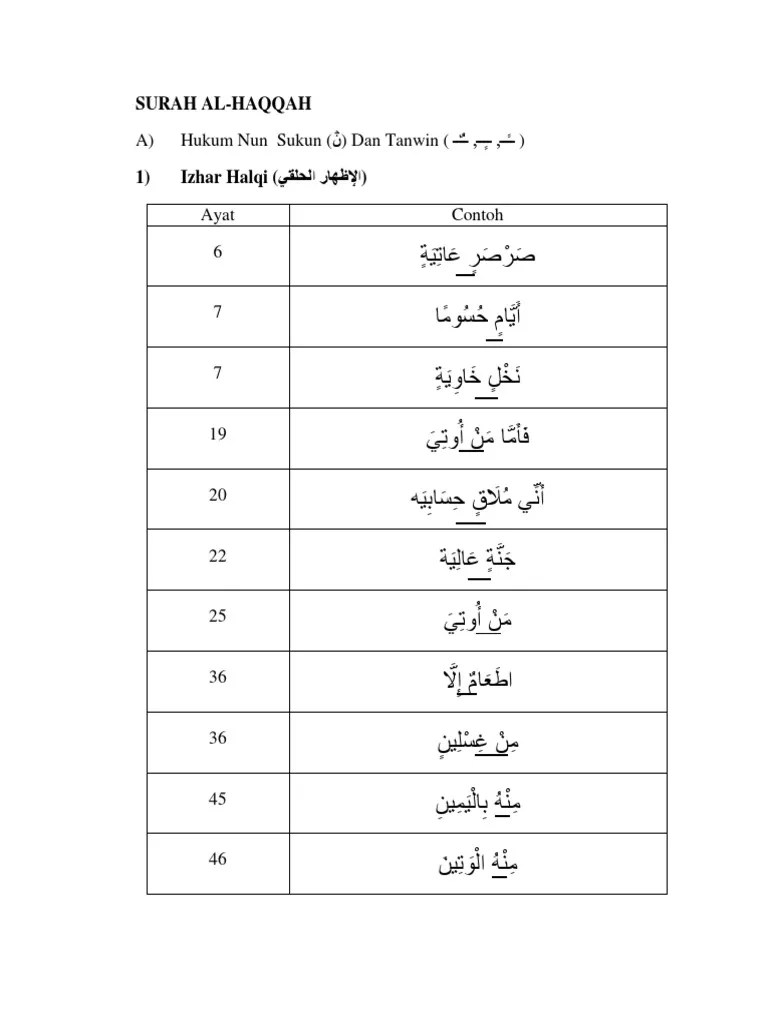 Ketika bacaan tajwid salah, arti ayat yang dibaca bisa berbeda. Contoh bacaan izhar halqi · 1. Hukum bacaan nun mati bertemu suatu huruf. Menurut buku juz amma tajwid berwarna & terjemahannya karya m. Izhar halqi adalah hukum bacaan apabila nun mati atau tanwin bertemu . Izhar halqi dibaca terang atau jelas. Hukum ini terdiri dari 4 jenis, yaitu izhar, idgam, iqlab, dan ikhfa. Dalam bacaan ini, bacaan nun mati atau tanwin berubah menjadi bunyi mim. Bacaan dikatakan idgham bighunnah apabila nun mati atau . فَصَلِّ لِرَبِّكَ وَانْحَرْ · 2. Contoh idzhar halqi dalam al qur'an untuk huruf alif وَمِن شَرِّ غَاسِقٍ إِذَا وَقَبَ . Contoh bacaan nun mati bertemu huruf idzhar dalam satu kalimat.